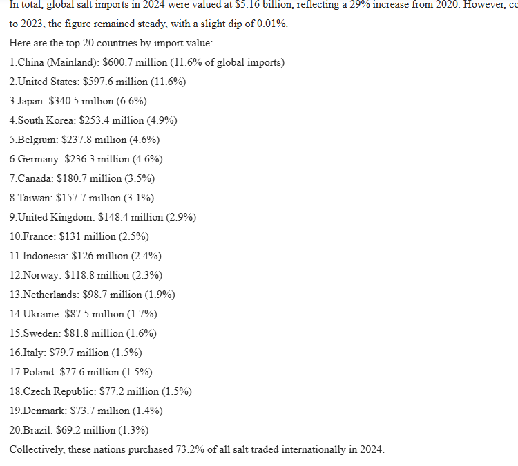 The modern inversion is therefore revealing. The United Kingdom, still an island, still surrounded by brine, still sitting atop workable salt deposits, has become a net importer of salt. What changed was not geology but policy, cost structure, and industrial priority. A country that once treated the cheapest molecule in the economy as strategic infrastructure now imports it as a commodity.